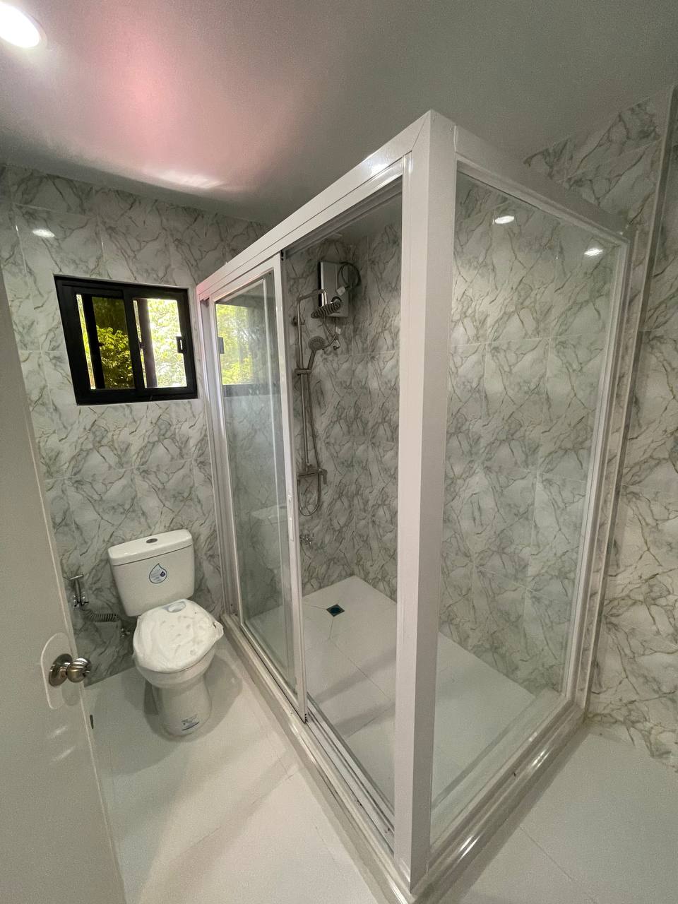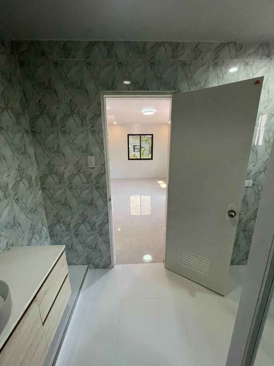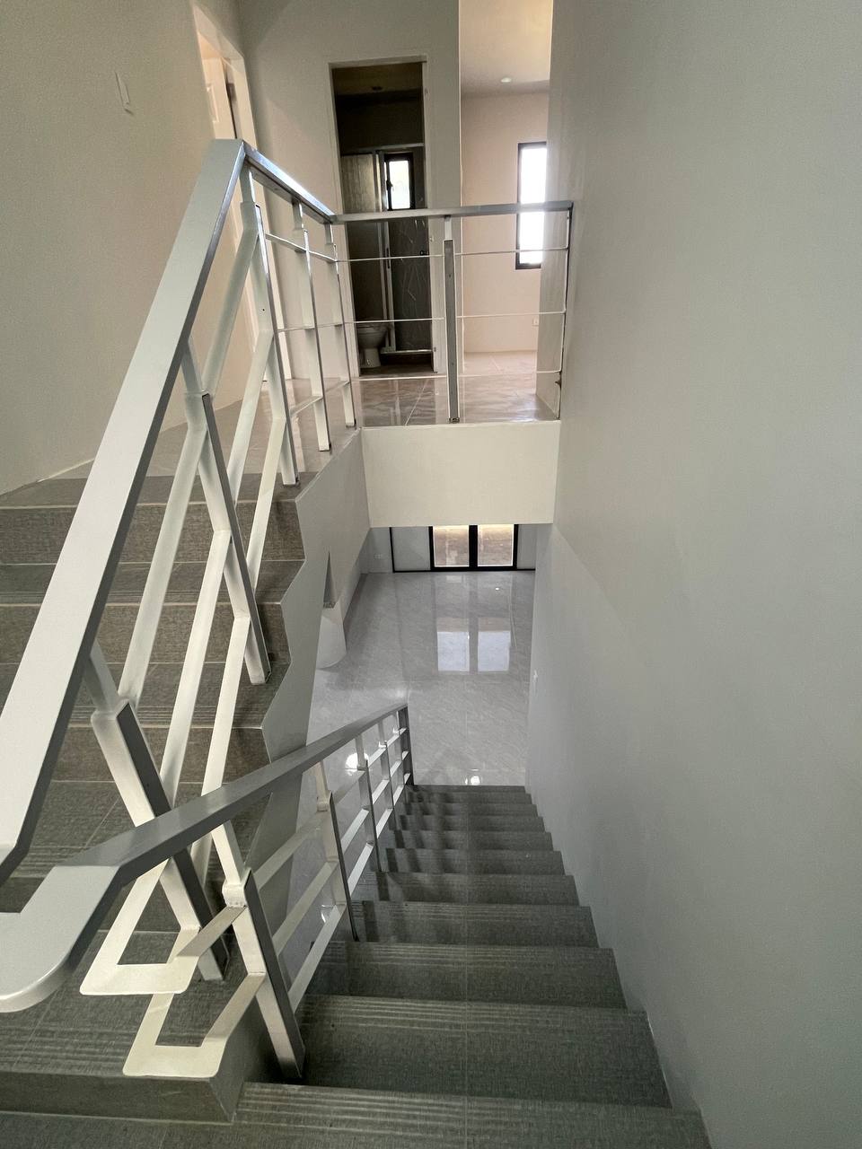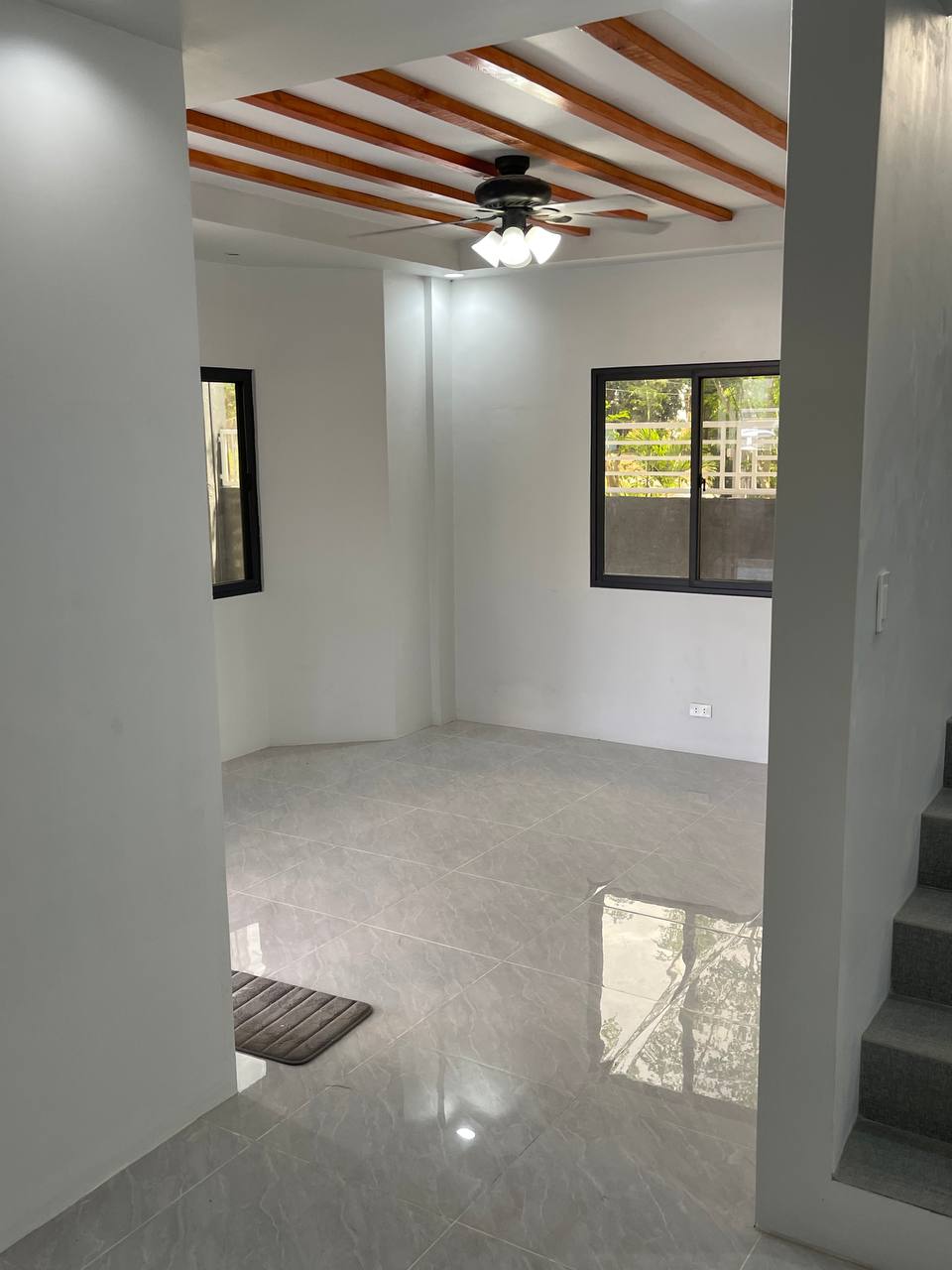 ๐๏ธโจ Sun-Drenched Living Space The living room features a clean, minimalist aesthetic with bright white walls that maximize the natural light pouring in from the large windows. The polished marble-style floor tiles create a stunning reflective surface, adding a touch of luxury and a spacious feel to the heart of the home.